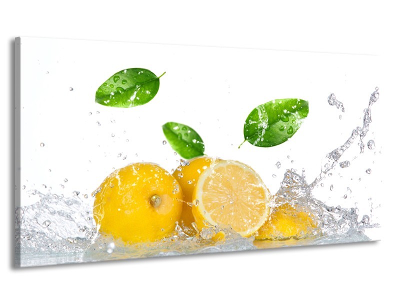 Canvas Schilderij Citroen, Keuken | Wit, Geel, Groen | 170x90cm 1Luik
