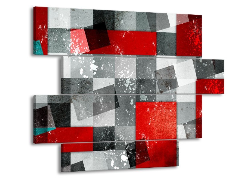 Canvas Schilderij Design | Grijs, Rood | 115x85cm 4Luik