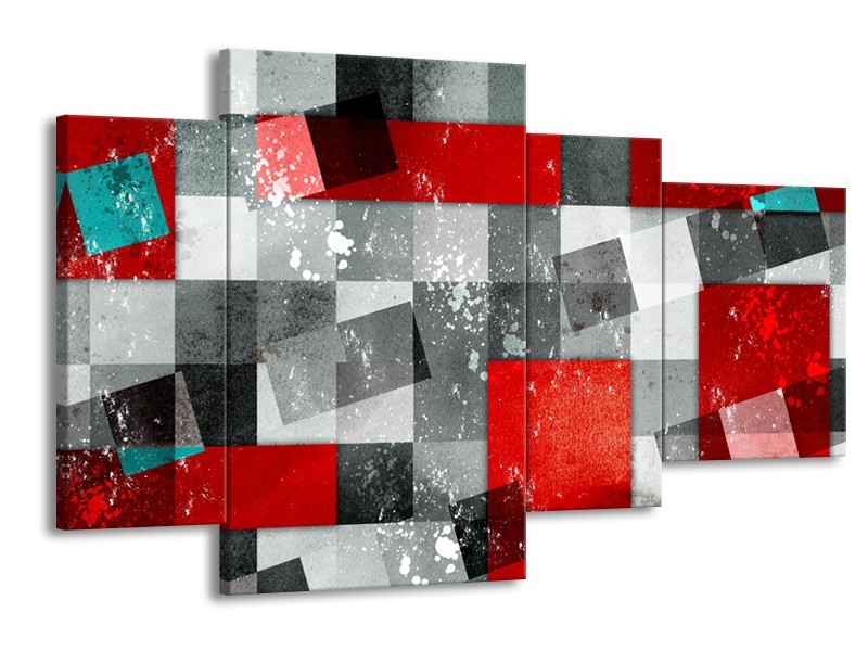 Canvas Schilderij Design | Grijs, Rood | 120x75cm 4Luik