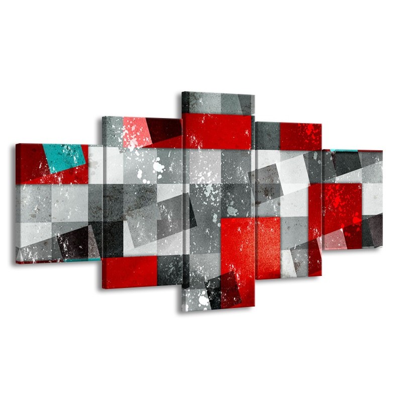 Canvas Schilderij Design | Grijs, Rood | 150x80cm 5Luik
