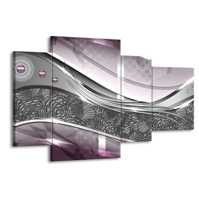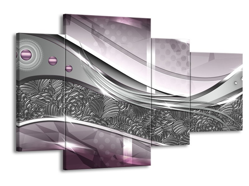 Canvas Schilderij Design, Modern | Grijs, Paars | 120x75cm 4Luik