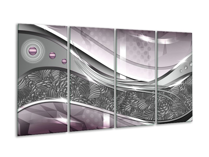 Canvas Schilderij Design, Modern | Grijs, Paars | 160x80cm 4Luik