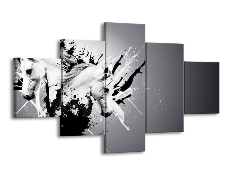 Canvas Schilderij Design, Paard | Zwart, Wit, Grijs | 125x70cm 5Luik