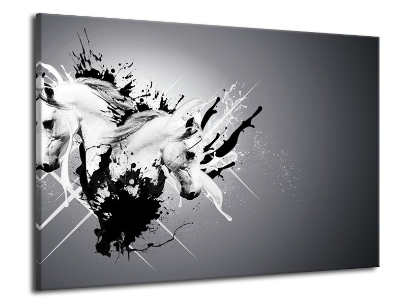 Canvas Schilderij Design, Paard | Zwart, Wit, Grijs | 70x50cm 1Luik