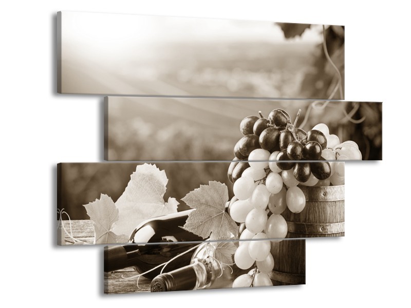 Canvas Schilderij Druiven, Keuken | Sepia | 115x85cm 4Luik