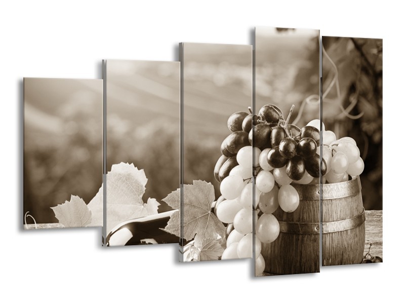 Canvas Schilderij Druiven, Keuken | Sepia | 150x100cm 5Luik
