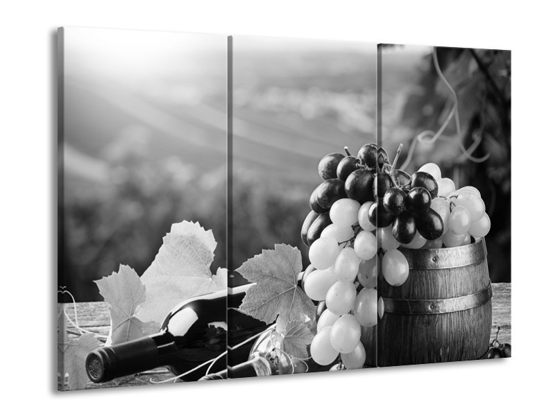Canvas Schilderij Druiven, Keuken | Zwart, Grijs | 60x90cm 3Luik