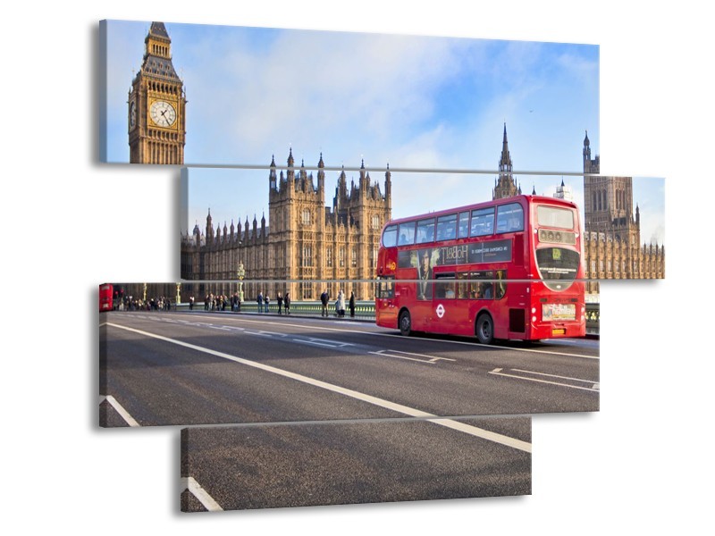 Canvas Schilderij Engeland, London | Grijs, Blauw, Rood | 115x85cm 4Luik