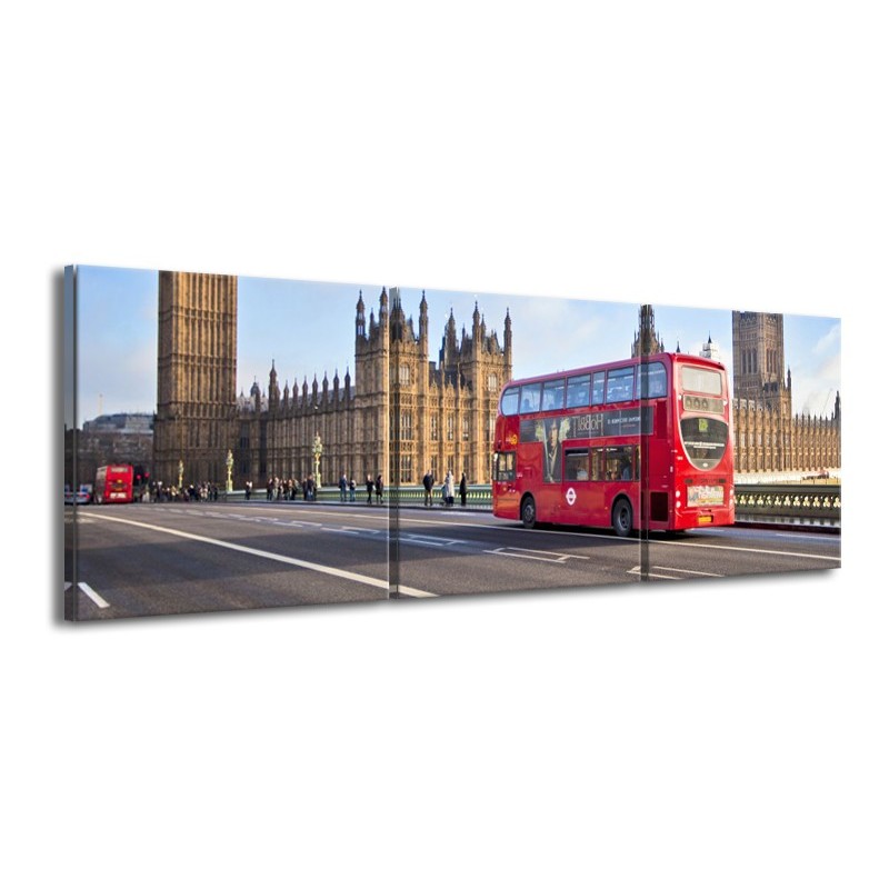 Canvas Schilderij Engeland, London | Grijs, Blauw, Rood | 150x50cm 3Luik