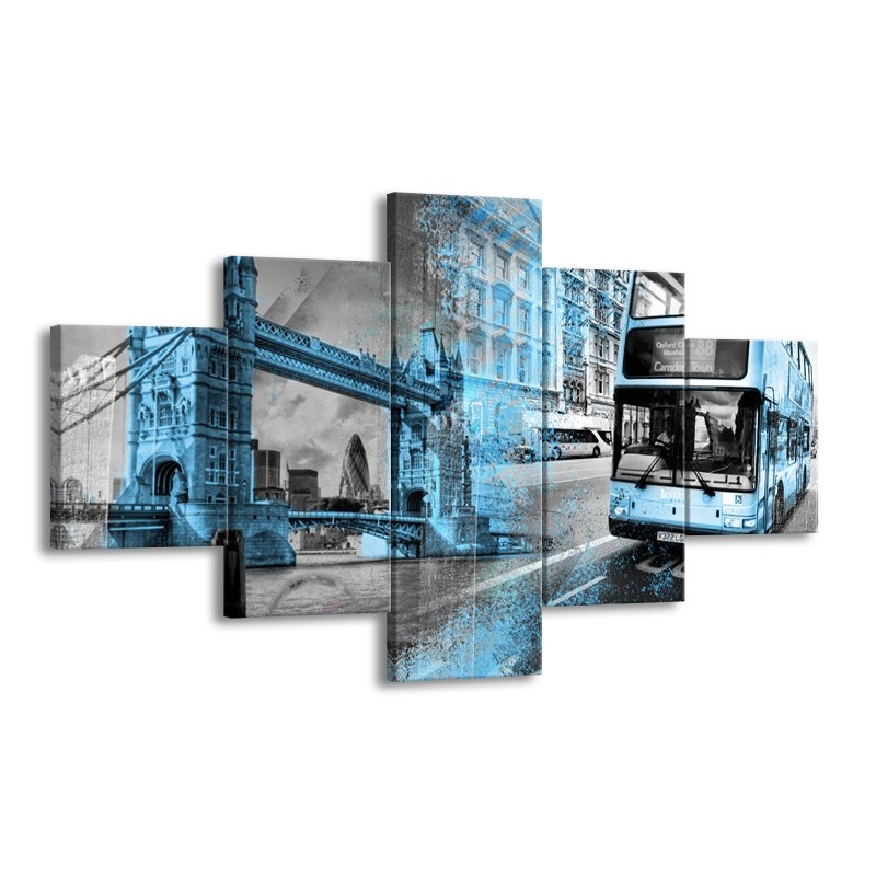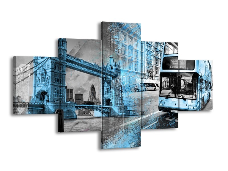 Canvas Schilderij Engeland, London | Grijs, Blauw, Zwart | 125x70cm 5Luik