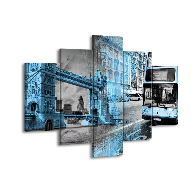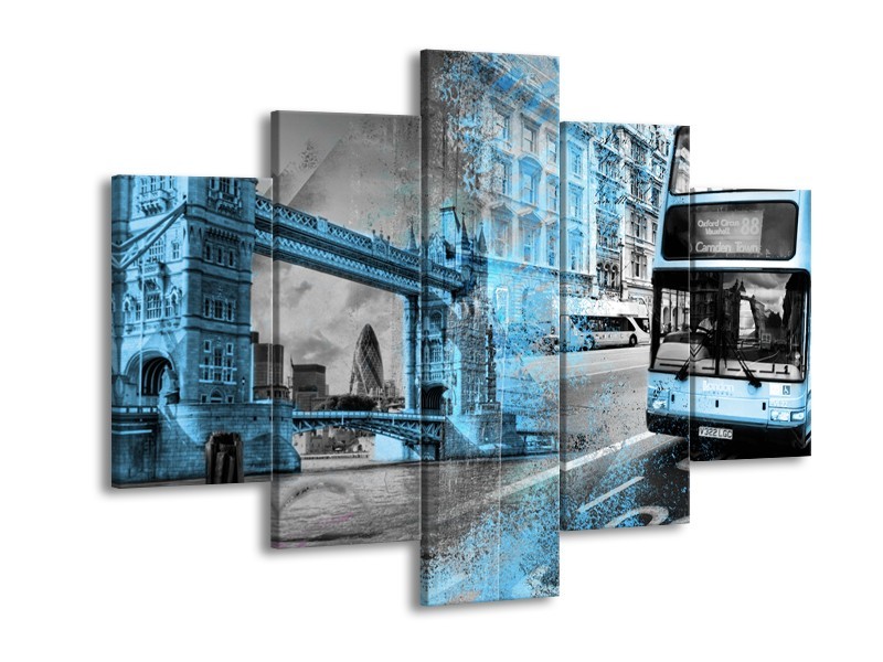 Canvas Schilderij Engeland, London | Grijs, Blauw, Zwart | 150x105cm 5Luik