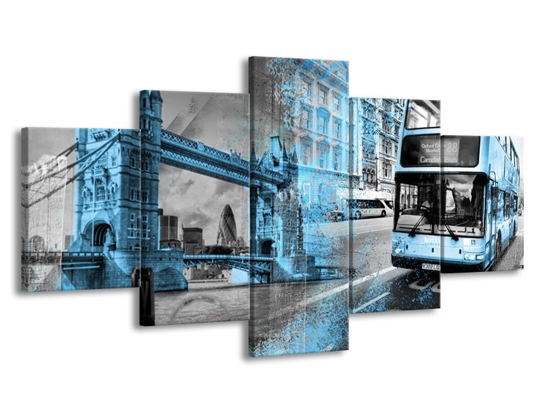 Canvas Schilderij Engeland, London | Grijs, Blauw, Zwart | 150x80cm 5Luik