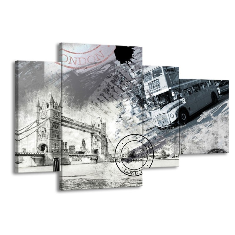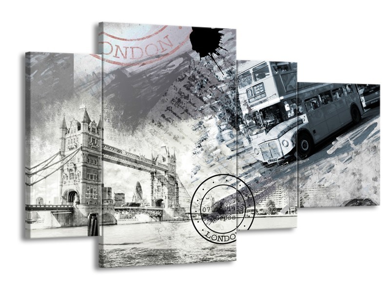 Canvas Schilderij Engeland, London | Grijs, Crème | 120x75cm 4Luik
