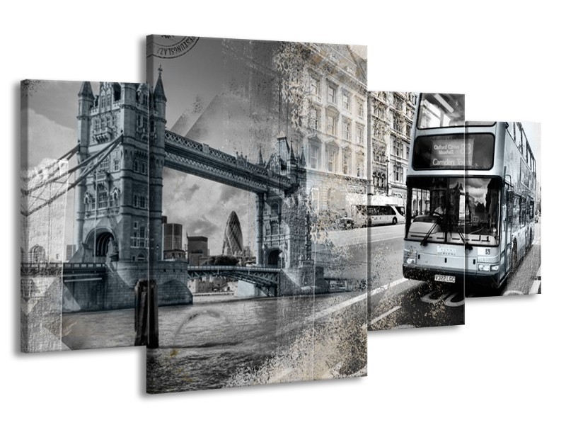 Canvas Schilderij Engeland, London | Grijs, Crème | 160x90cm 4Luik