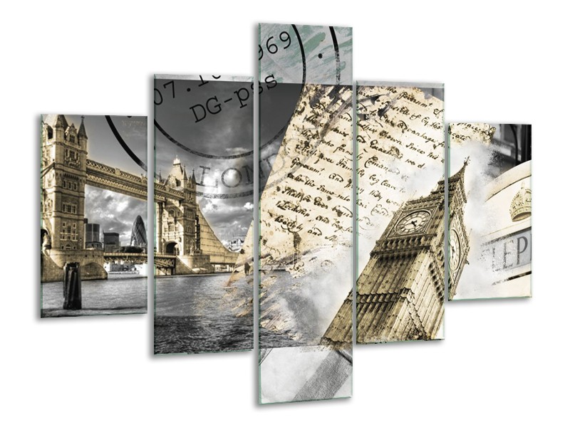 Canvas Schilderij Engeland, London | Grijs, Crème, Bruin | 100x70cm 5Luik