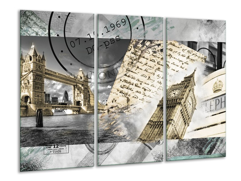 Canvas Schilderij Engeland, London | Grijs, Crème, Bruin | 120x80cm 3Luik