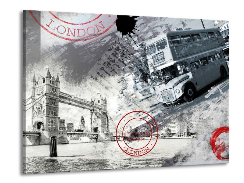 Canvas Schilderij Engeland, London | Grijs, Crème, Rood | 100x70cm 1Luik