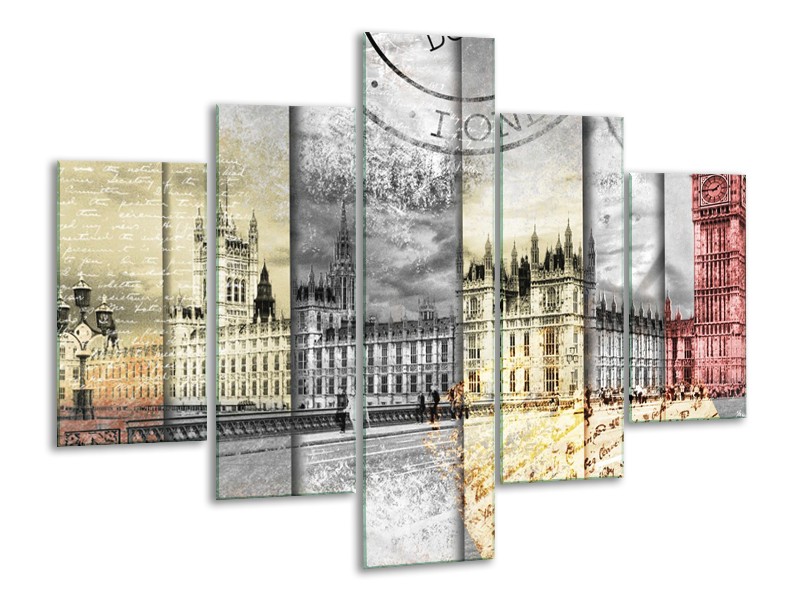 Canvas Schilderij Engeland, London | Grijs, Crème, Rood | 100x70cm 5Luik