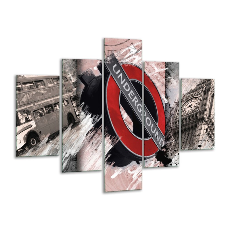Canvas Schilderij Engeland, London | Grijs, Crème, Rood | 100x70cm 5Luik