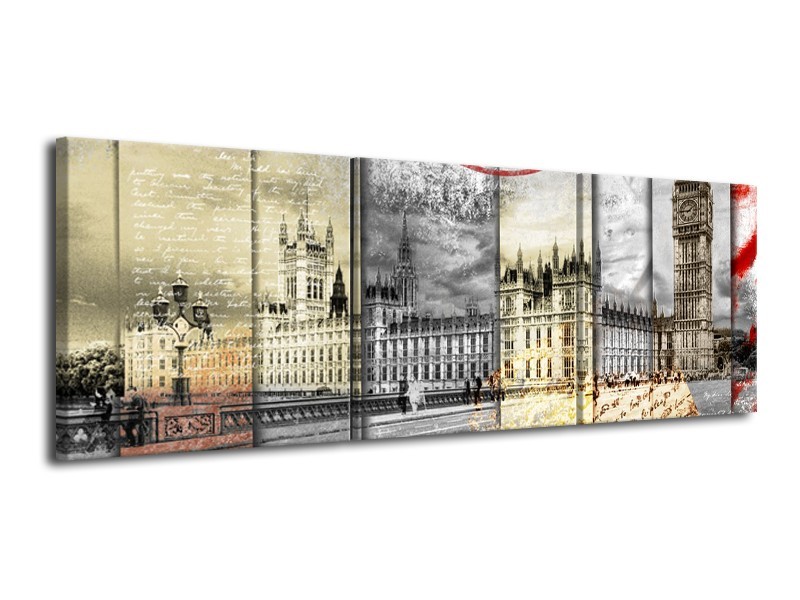 Canvas Schilderij Engeland, London | Grijs, Crème, Rood | 120x40cm 3Luik