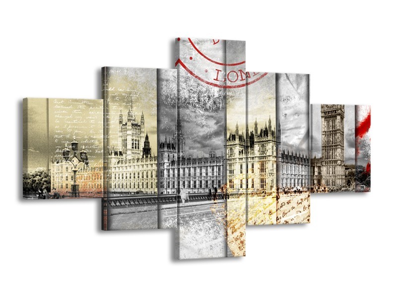 Canvas Schilderij Engeland, London | Grijs, Crème, Rood | 125x70cm 5Luik