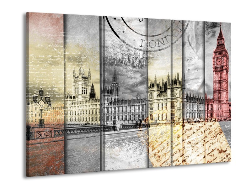 Canvas Schilderij Engeland, London | Grijs, Crème, Rood | 60x90cm 3Luik