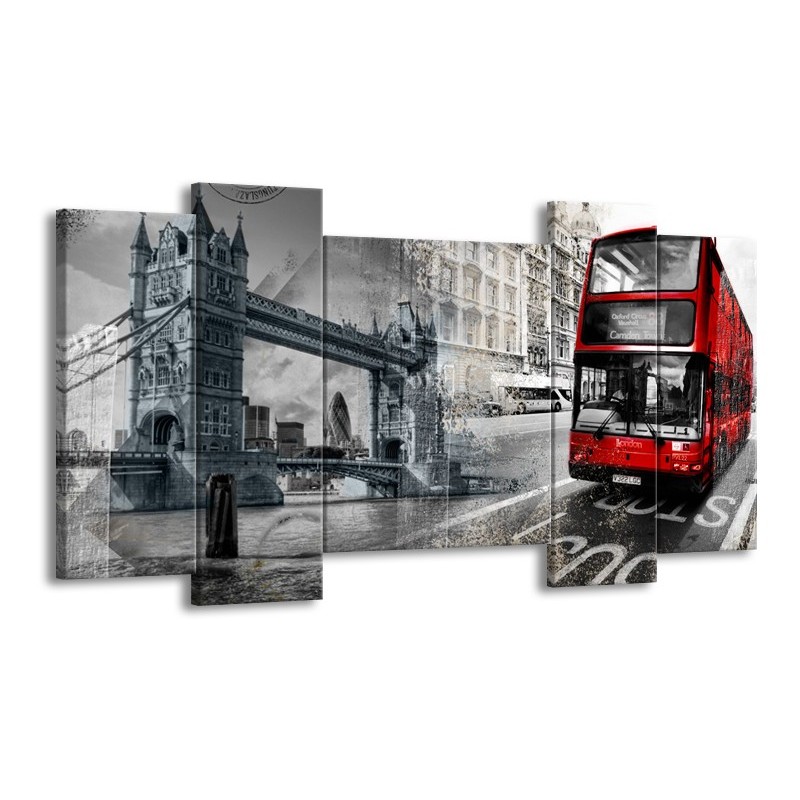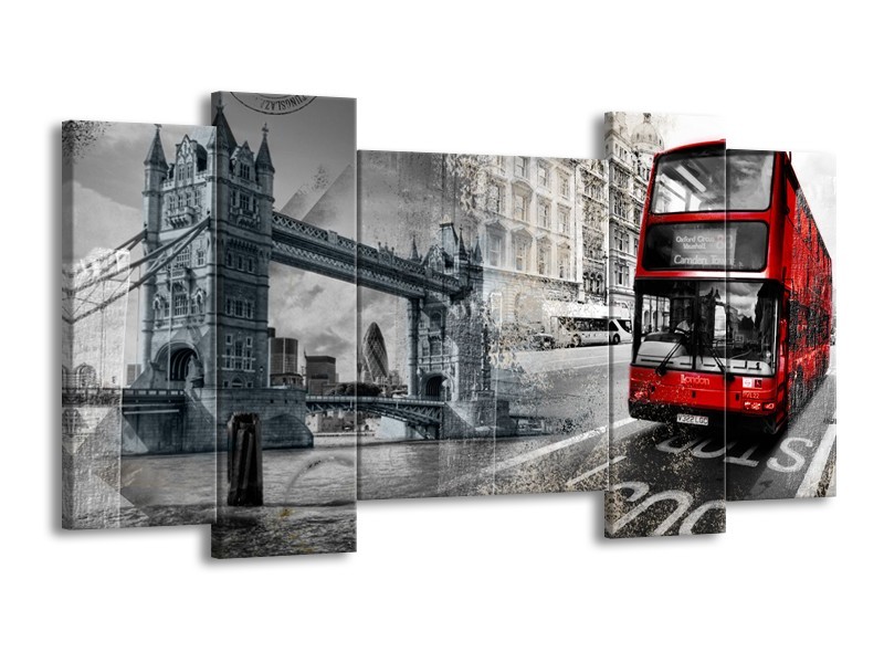 Canvas Schilderij Engeland, London | Grijs, Rood | 120x65cm 5Luik