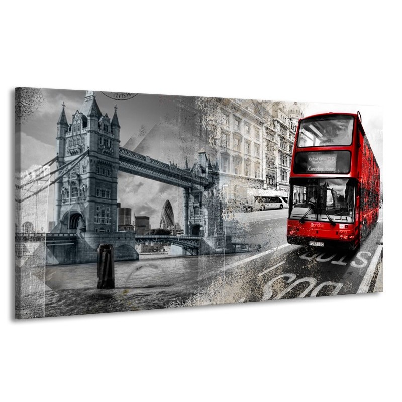 Canvas Schilderij Engeland, London | Grijs, Rood | 170x90cm 1Luik