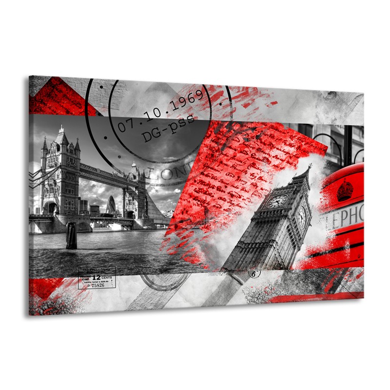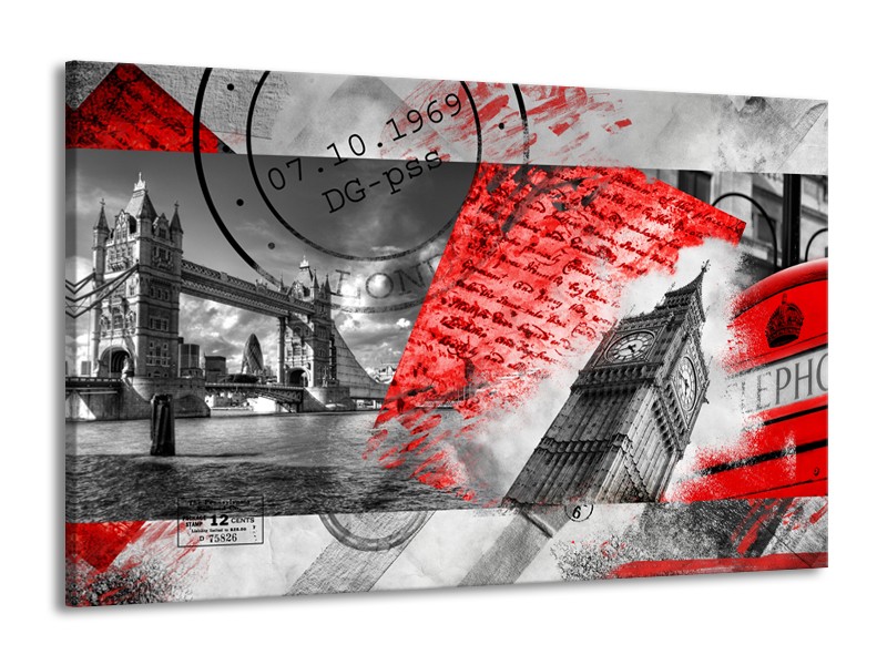 Canvas Schilderij Engeland, London | Grijs, Rood, Zwart | 140x90cm 1Luik