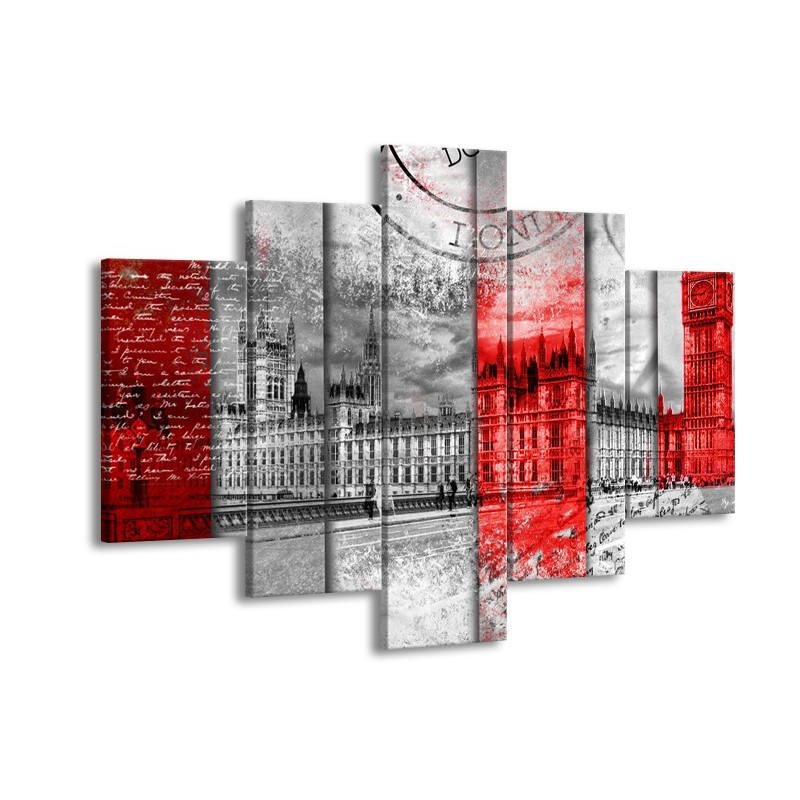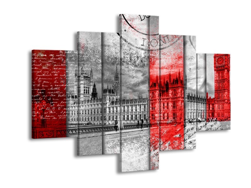 Canvas Schilderij Engeland, London | Grijs, Rood, Zwart | 150x105cm 5Luik