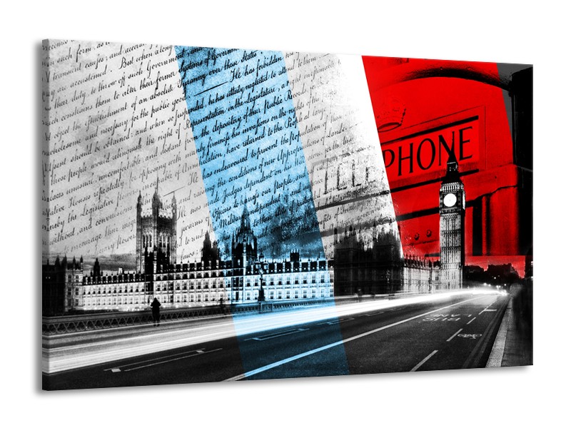 Canvas Schilderij Engeland, London | Zwart, Blauw, Rood | 140x90cm 1Luik