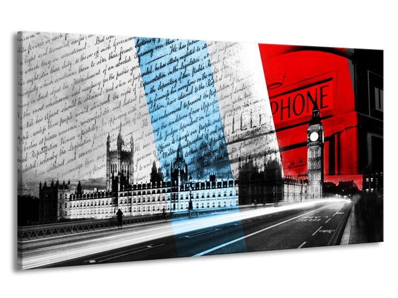 Canvas Schilderij Engeland, London | Zwart, Blauw, Rood | 190x100cm 1Luik