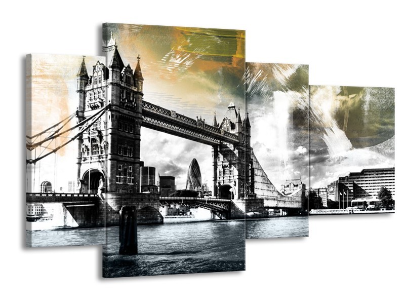 Canvas Schilderij Engeland, London | Zwart, Grijs, Groen | 120x75cm 4Luik