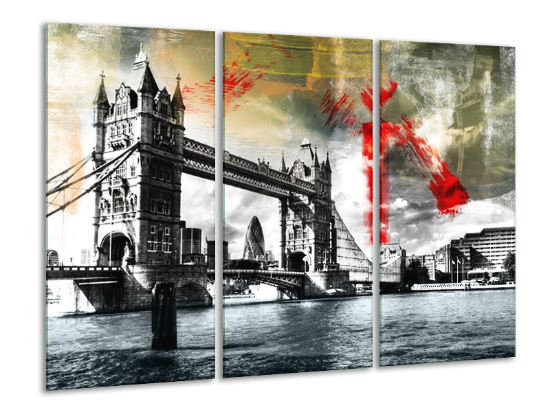 Canvas Schilderij Engeland, London | Zwart, Wit, Rood | 120x80cm 3Luik