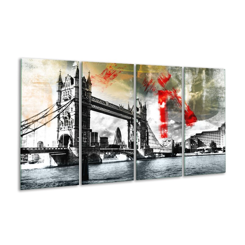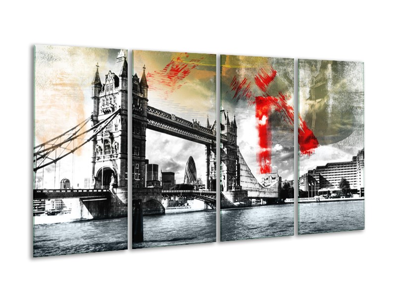 Canvas Schilderij Engeland, London | Zwart, Wit, Rood | 160x80cm 4Luik