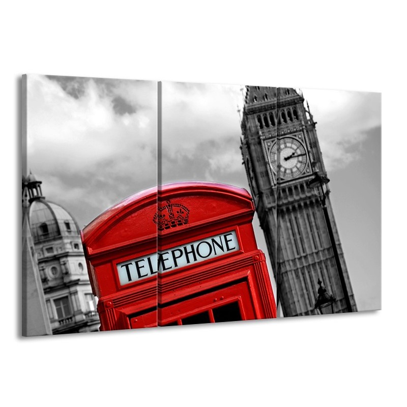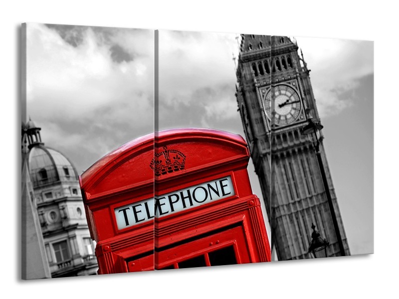 Canvas Schilderij Engeland, London | Zwart, Wit, Rood | 165x100cm 3Luik