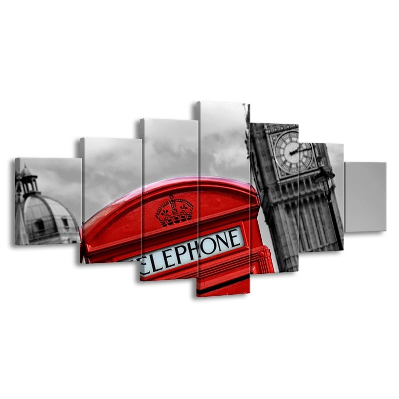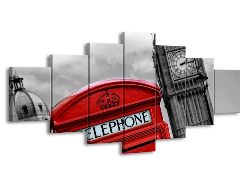 Canvas Schilderij Engeland, London | Zwart, Wit, Rood | 210x100cm 7Luik