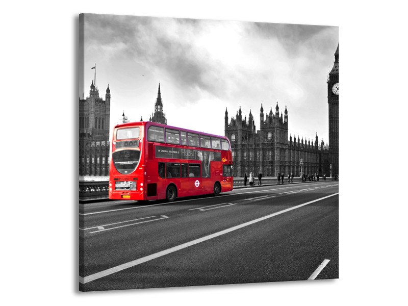 Canvas Schilderij Engeland, London | Zwart, Wit, Rood | 50x50cm 1Luik