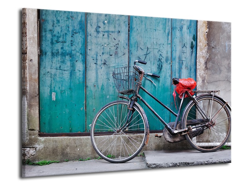 Canvas Schilderij Fiets | Blauw, Groen, Grijs | 70x50cm 1Luik
