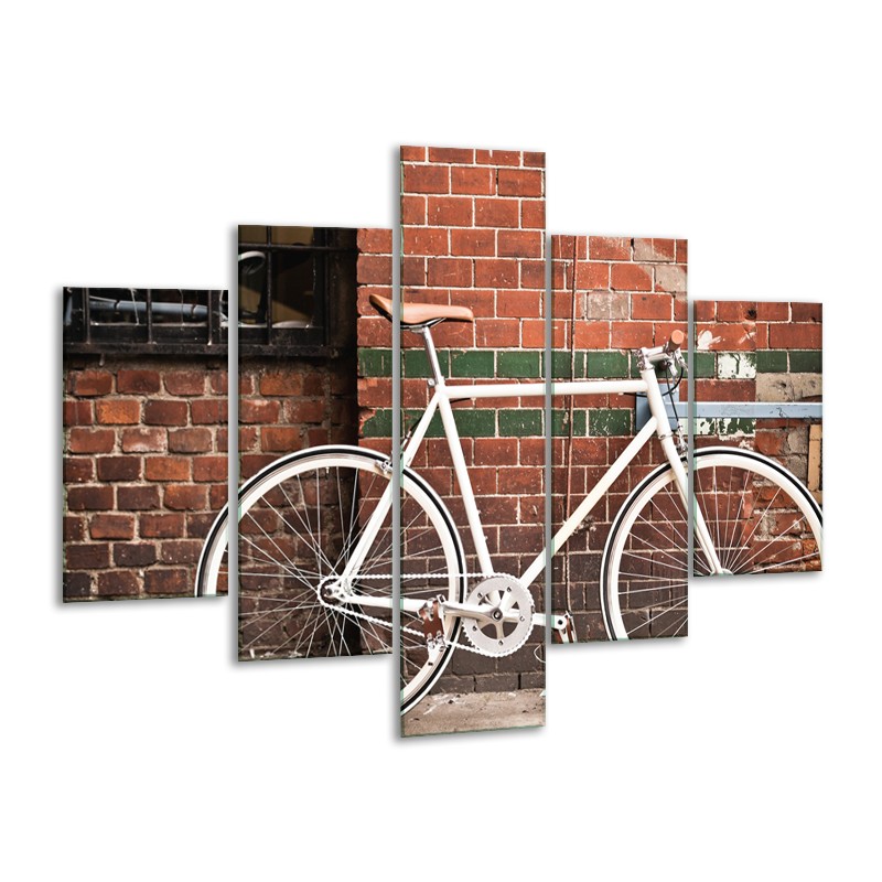 Canvas Schilderij Fiets | Bruin, Wit | 100x70cm 5Luik