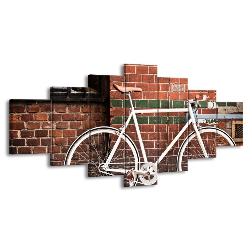 Canvas Schilderij Fiets | Bruin, Wit | 210x100cm 7Luik