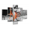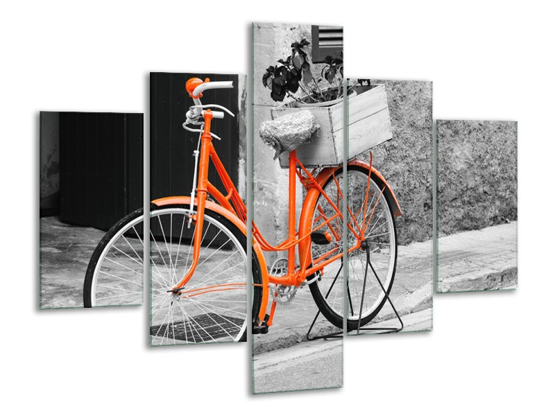 Canvas Schilderij Fiets | Grijs, Oranje, Zwart | 100x70cm 5Luik