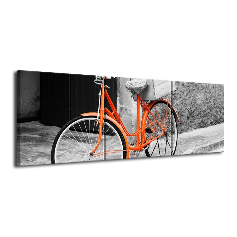 Canvas Schilderij Fiets | Grijs, Oranje, Zwart | 120x40cm 3Luik