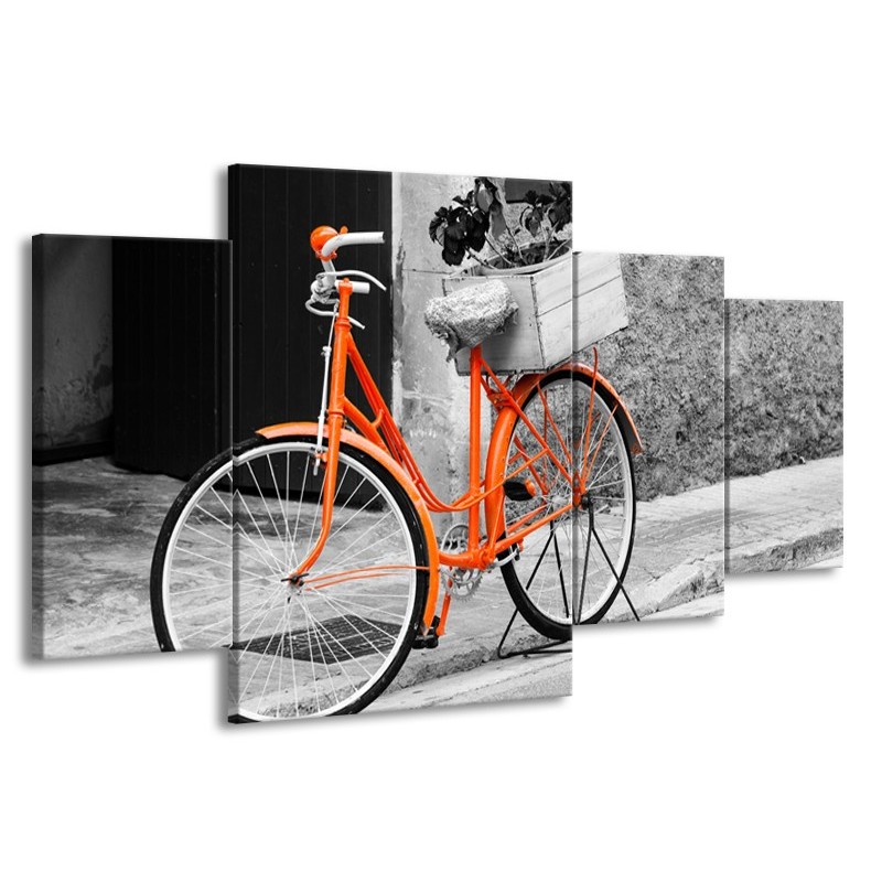 Canvas Schilderij Fiets | Grijs, Oranje, Zwart | 160x90cm 4Luik