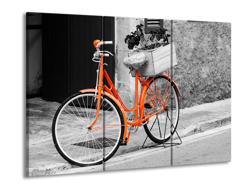 Canvas Schilderij Fiets | Grijs, Oranje, Zwart | 60x90cm 3Luik