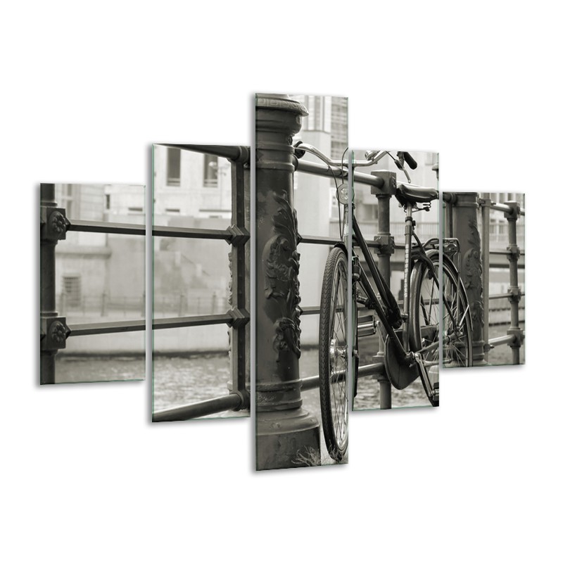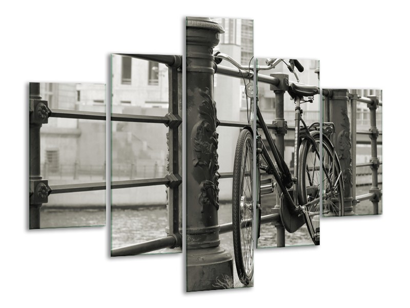 Canvas Schilderij Fiets | Grijs, Zwart | 100x70cm 5Luik