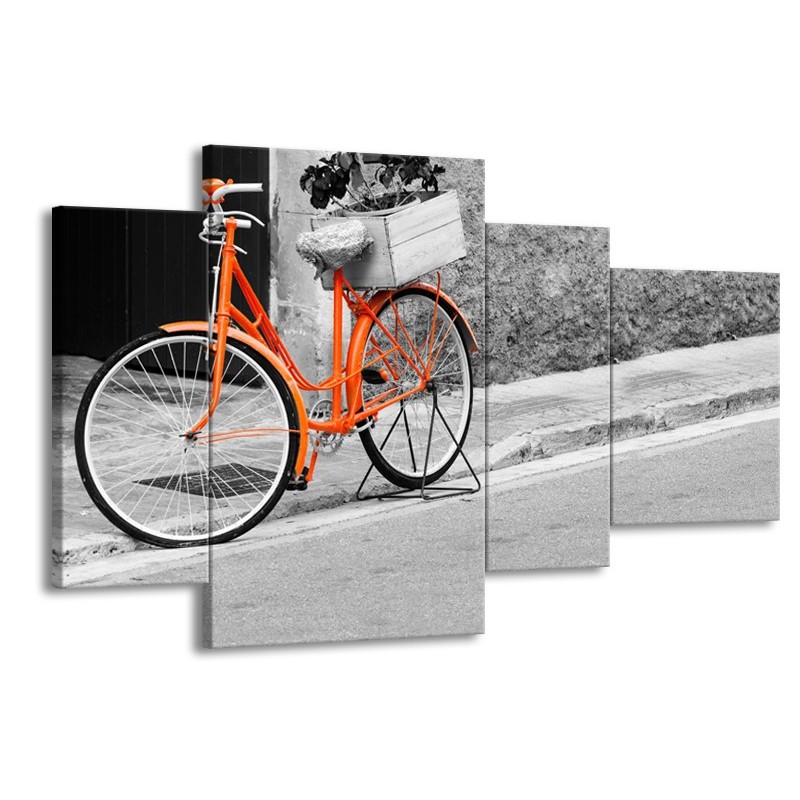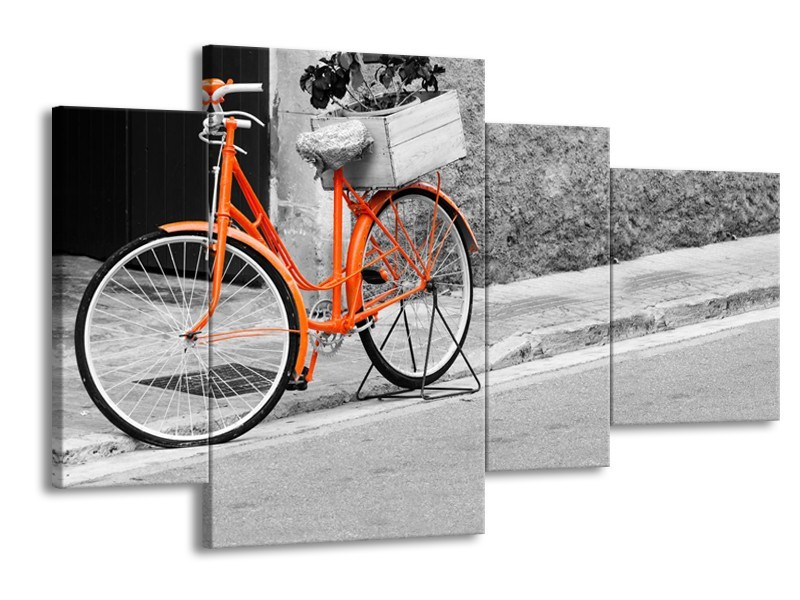 Canvas Schilderij Fiets | Oranje, Zwart, Wit | 120x75cm 4Luik