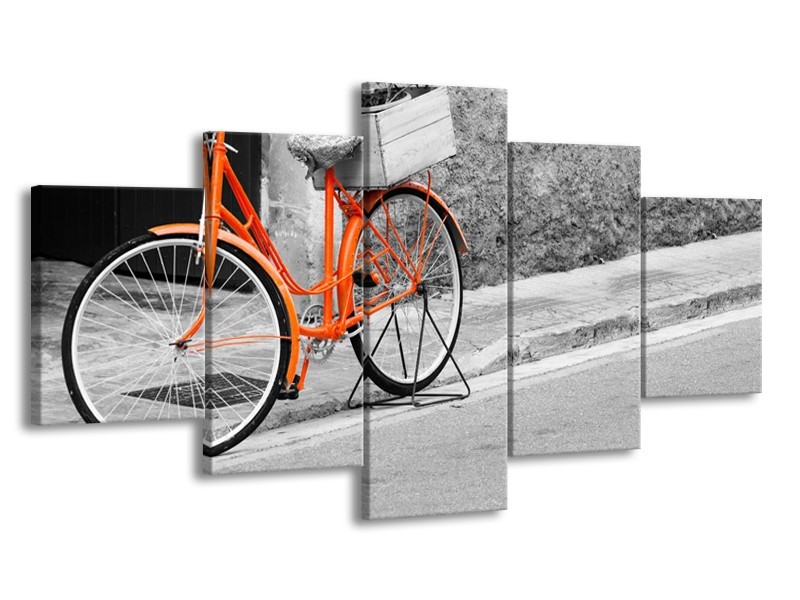 Canvas Schilderij Fiets | Oranje, Zwart, Wit | 150x80cm 5Luik