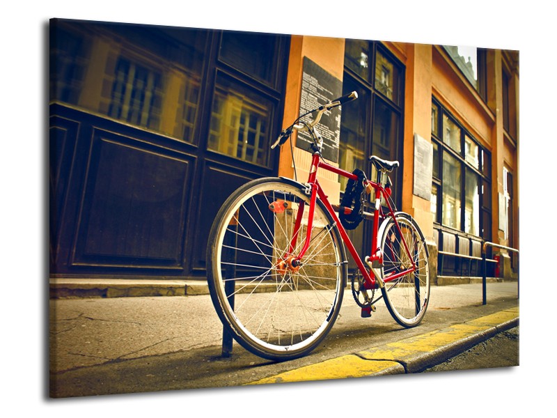 Canvas Schilderij Fiets, Straat | Bruin, Rood, Geel | 70x50cm 1Luik
