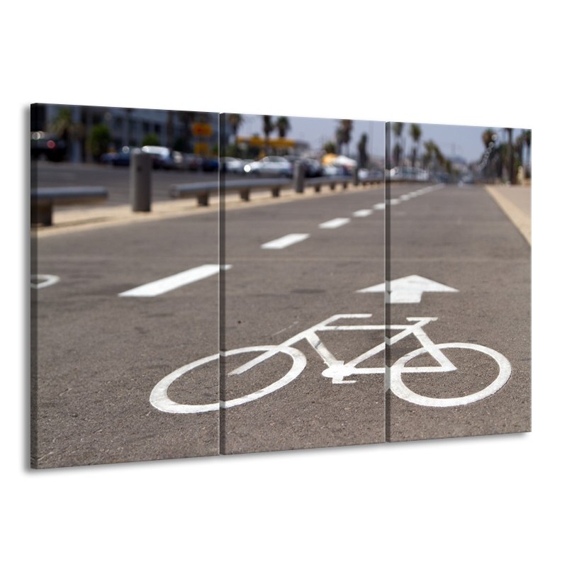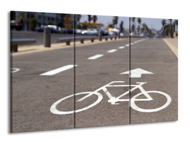 Canvas Schilderij Fietspad | Grijs, Wit | 165x100cm 3Luik
